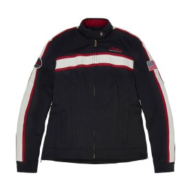 Ceci est un blouson de moto textile léger avec un marquage audacieux à l'arrière. Une doublure matelassée amovible qui offre une isolation pour les températures fraîches.